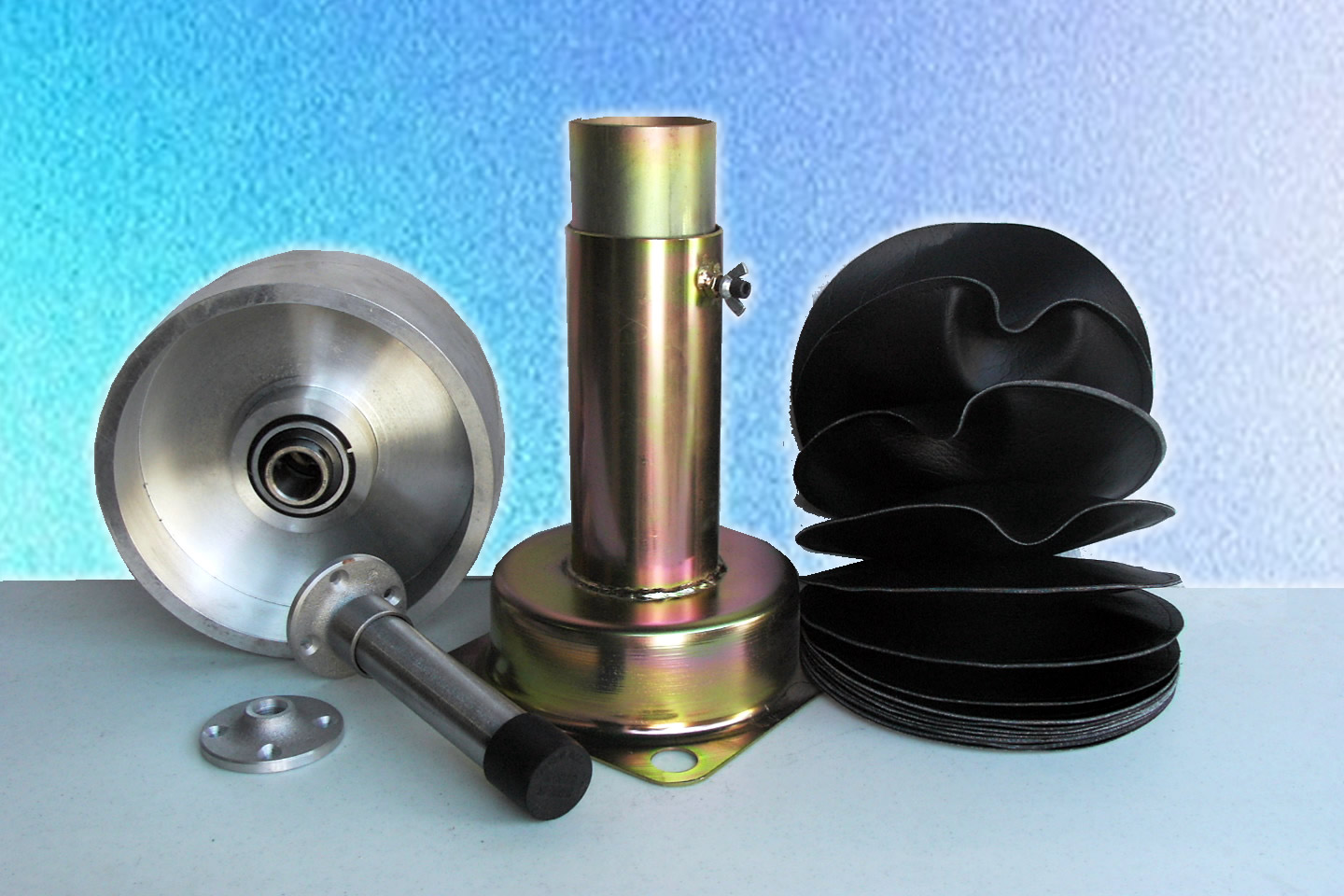 Belt Master and Toro pulleys available. Shaft guards, shaft bellows, removable shaft ends and hand spinners. Buff and Belt Hood Covers for standard machines are available as well (Not Shown)